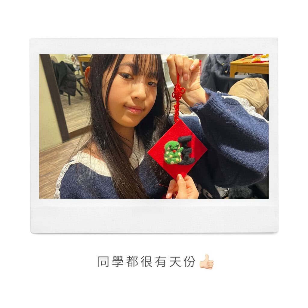 課程花絮 課程花絮|2025.1.11 蛇年立體春聯羊毛氈 經過 Yuki Li 2025/01/11 Yuki Li 2025/01/11 2.8K \ 🐍蛇年立體春聯課程圓滿成功!🎉/今天的羊毛氈蛇年立體春聯課程好熱鬧啊!🎨👩🎨現場充滿了創意與笑聲大家揮灑巧手把一隻隻充滿年味的小蛇「戳」上春聯~😍🐍並且發揮每個人的創意把過年的吉祥字親手刻在春聯上課堂瞬間變成了新年手作小樂園!🎊大家的作品都超有個性✨每一條蛇都彷彿活了起來洋溢著迎接新年的熱情與喜悅~🎈看到大家拿著完成的作品露出大大的笑容真的超感動!💖一起迎接充滿祝福的2025蛇年吧!🎉謝謝每位參加的朋友你們的熱情讓今天變得特別精彩~希望新年的每一天都像今天一樣充滿幸福和創意!🧧🐍💕 手作教室手作課程蛇年過年 0 評論 發表評論 取消回覆 在此瀏覽器中儲存我的姓名、電子郵件和網站記錄,以便下次評論時使用。 Δ 上一篇文章 課程花絮|2025.1.5 蛇年立體春聯羊毛氈 下一篇文章 課程花絮|2025.1.18 蛇年立體春聯羊毛氈 你可能會喜歡 課程花絮|202... 2026/01/13 課程花絮|202... 2025/12/25 課程花絮|202... 2025/07/30 課程花絮|202... 2025/07/27 課程花絮|202... 2025/07/15 課程花絮|松山社... 2025/07/12 課程花絮|成果大... 2025/07/10 課程花絮|202... 2025/06/28 課程花絮|202... 2025/06/22 課程花絮|202... 2025/05/31