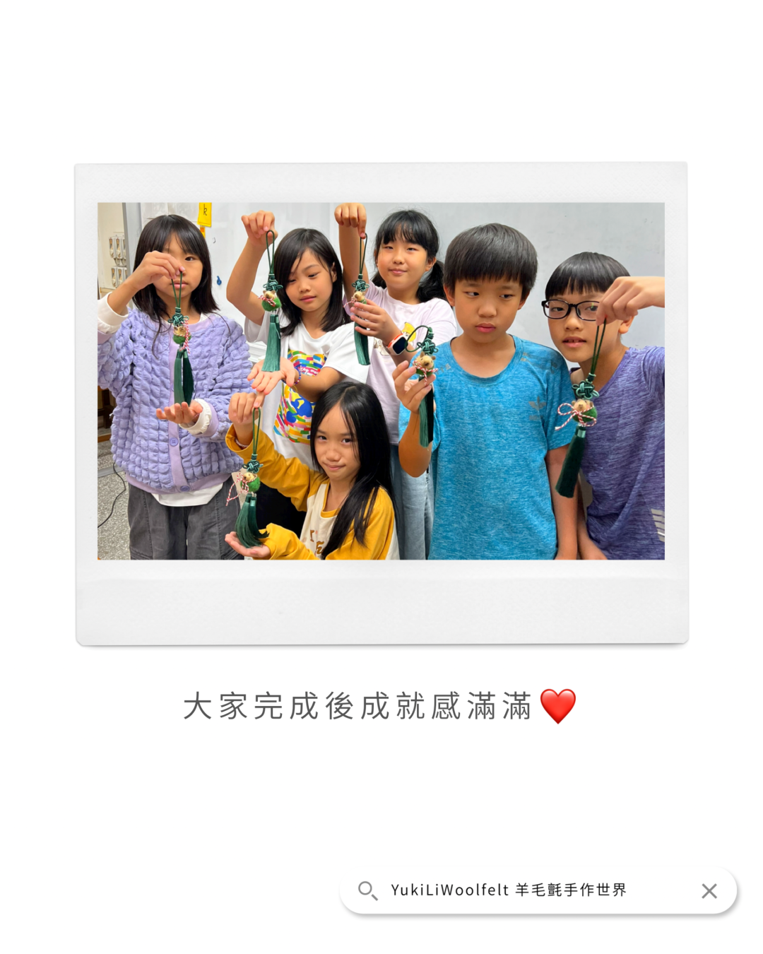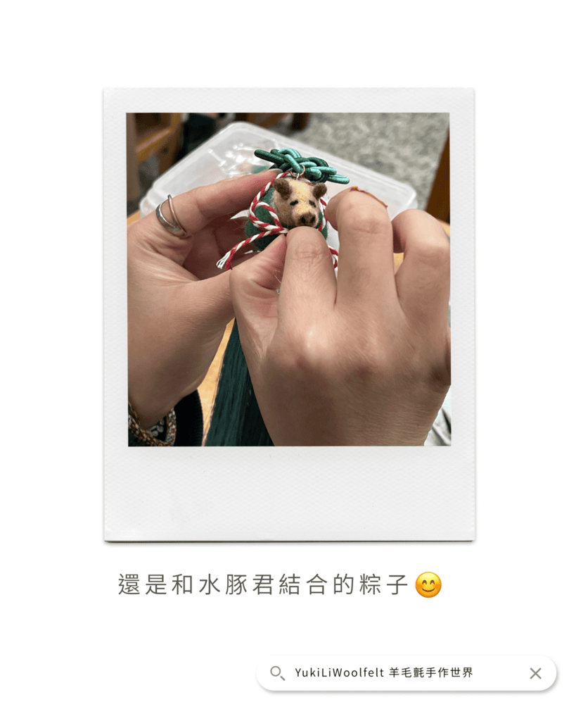 課程花絮 課程花絮|2025.05.31 端午節水豚君肉粽香包 by Yuki Li 2025/05/31 Yuki Li 2025/05/31 403 \ 🐉粽香x可愛大爆擊!水豚君陪你過端午🎋 /端午節怎麼過最特別?當然是和水豚君一起包「粽子香包」啦!這次課程我帶著國小生與社區大學學生們用羊毛氈製作超Q的水豚君粽子香包掛飾🐹!每個同學都專注地戳刺親手打造出獨一無二的療癒小粽子~😍每一顆都療癒爆表✨這些可愛的小水豚藏身在翠綠的粽葉裡搭配精緻的中國結與流蘇不僅滿滿的節日氣息也充滿現代創意讓粽子也能成為時尚小物💚看著學生們開心地完成作品迫不及待要帶回家掛起來或送人這份屬於手作的溫度就是節日最棒的紀念🎁今年端午就讓水豚君陪你驅蚊避邪好運滿滿吧🥰! 國小生手作教室手作課程社區大學 0 評論 發表評論 取消回覆 在此瀏覽器中儲存我的姓名、電子郵件和網站記錄,以便下次評論時使用。 Δ 上一篇文章 手作教室|2025.6月羊毛氈手作課程【已額滿】 下一篇文章 \ 療癒登場!YukiLi Woolfelt × Pregnancy Cafe 🍞🐶☕️/ 你可能會喜歡 課程花絮|202... 2025/07/30 課程花絮|202... 2025/07/27 課程花絮|202... 2025/07/15 課程花絮|松山社... 2025/07/12 課程花絮|成果大... 2025/07/10 課程花絮|202... 2025/06/28 課程花絮|202... 2025/06/22 課程花絮|202... 2025/05/06 課程花絮|202... 2025/05/03 課程花絮|202... 2025/05/03
