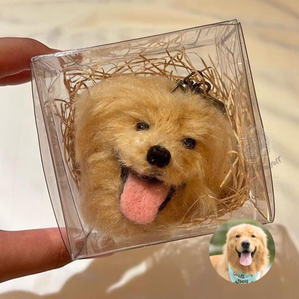 這是我為黃金獵犬創作的大頭羊毛氈鑰匙圈!