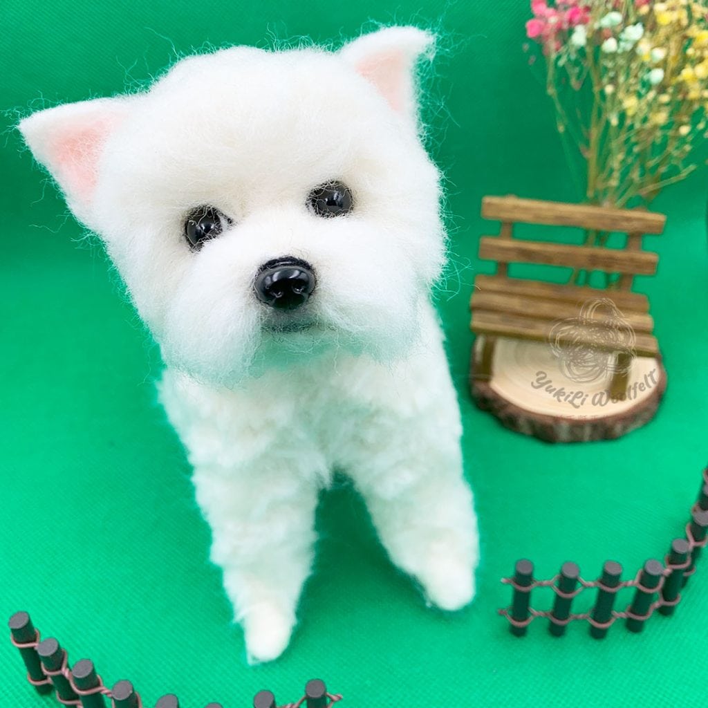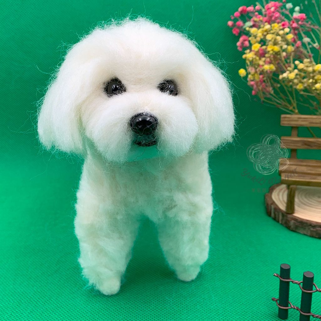 第二隻的蹦啾相較第一隻的差別應該在於擬真度,第一隻是比較Q版的,這次在挑選長纖維植毛的品質上,我統一都是使用日本製的Hamanaka的植毛系列,白色的長纖羊毛摸起來非常柔順。